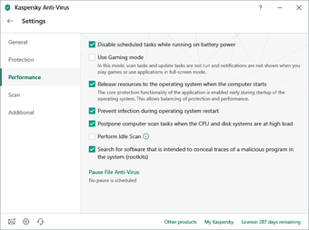 KAVは前の版と比較して少ないリソースを消費しますが、それはまだその点で行くための長い道のりを持っています。それは素晴らしいアンチウイルスですが、それは良いハードウェアを搭載したコンピュータで使用されたときよりよく機能します。